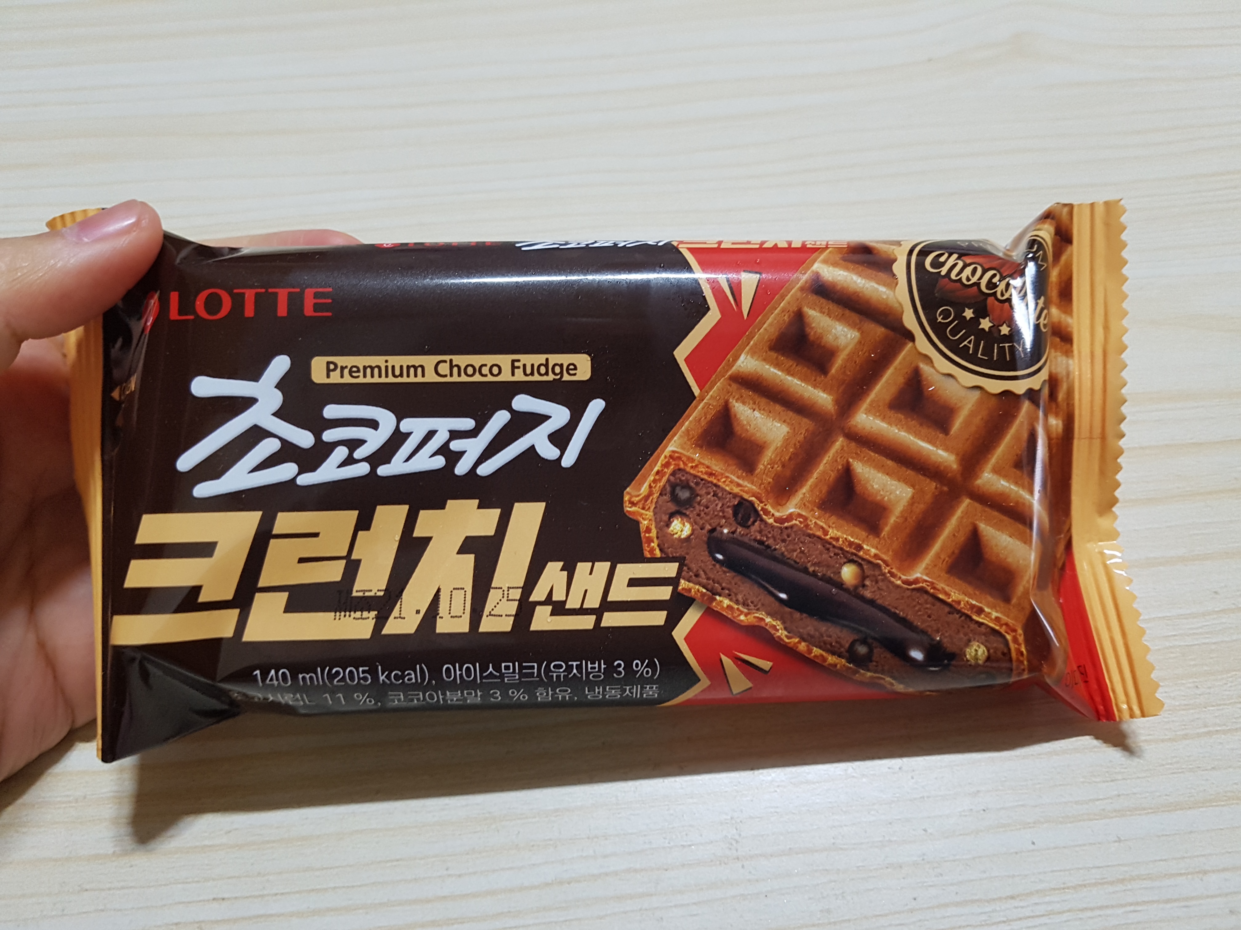 롯데푸드에서 출시한 초코퍼지 크런치 샌드입니다.