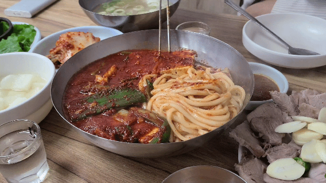 양념과 두부 속에 숨겨진 칼국수를 뿅! 하고 꺼내봅니다 후후..