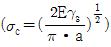 18. 취성재료의 균열 전파에 필요한 임계 응력의 크기(σc)를 구하는 식 (단, E=탄성에너지, γs=비표면 에너지, a=내부 균열길이의 1/2 이다.)